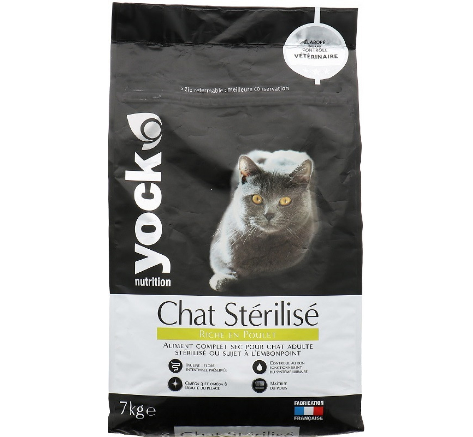 Yock Nutrition Chat stérilisé est un aliment complet sec pour les chats et chattes adultes stérilisés de toutes races qui ont des besoins caloriques spécifiques en raison de leur stérilisation.