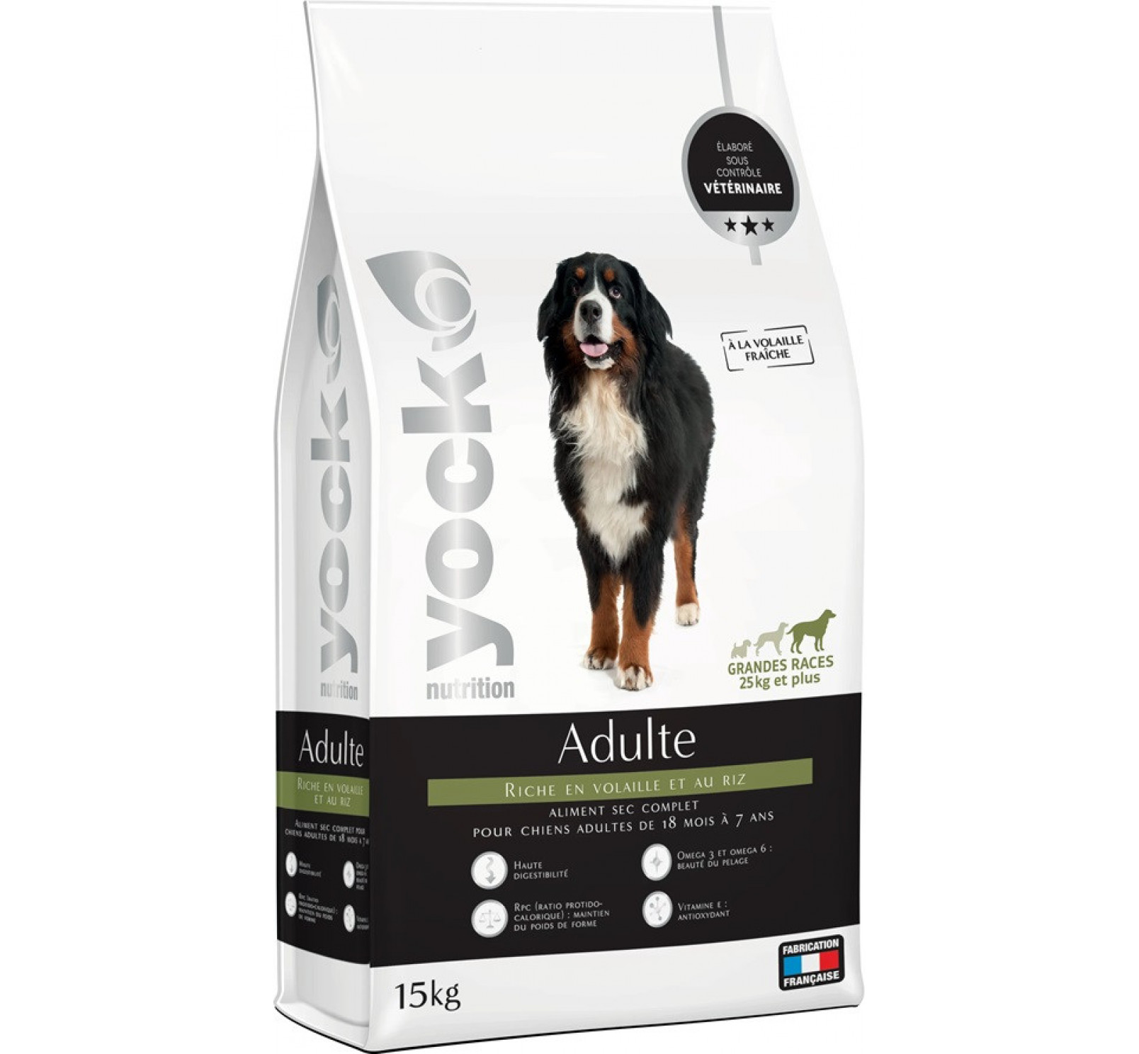 Yock Nutrition Adulte Grandes Races à la volaille fraîche répond aux besoins spécifiques des grands chiens. Cette formule a été développée en tenant compte des besoins liés à l'âge et aux conditions de vie de votre chien.