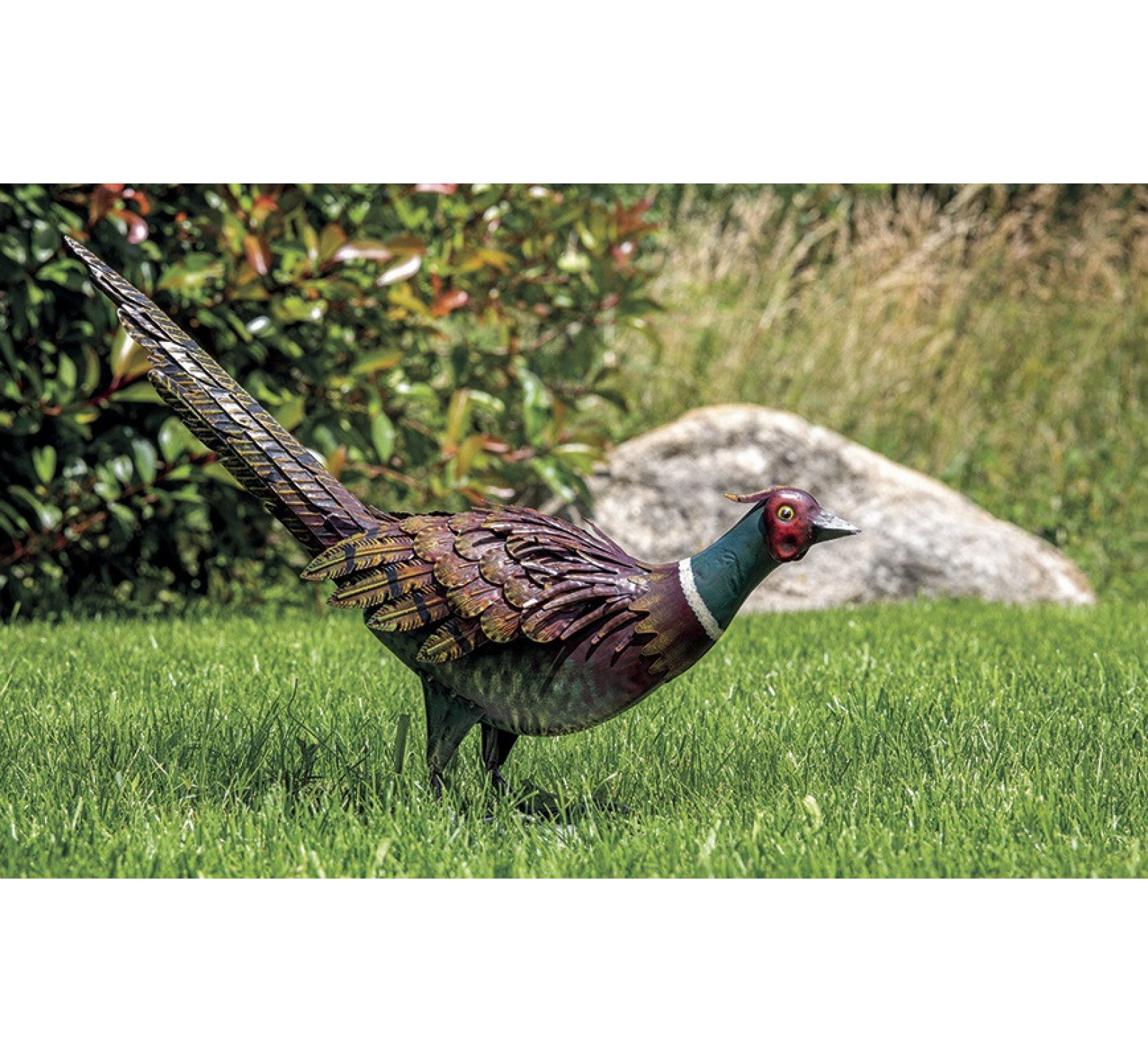 Ce faisan décoratif stylisé trônera au milieu de votre jardin, sur votre pelouse, dans une cour, ou sur un muret.