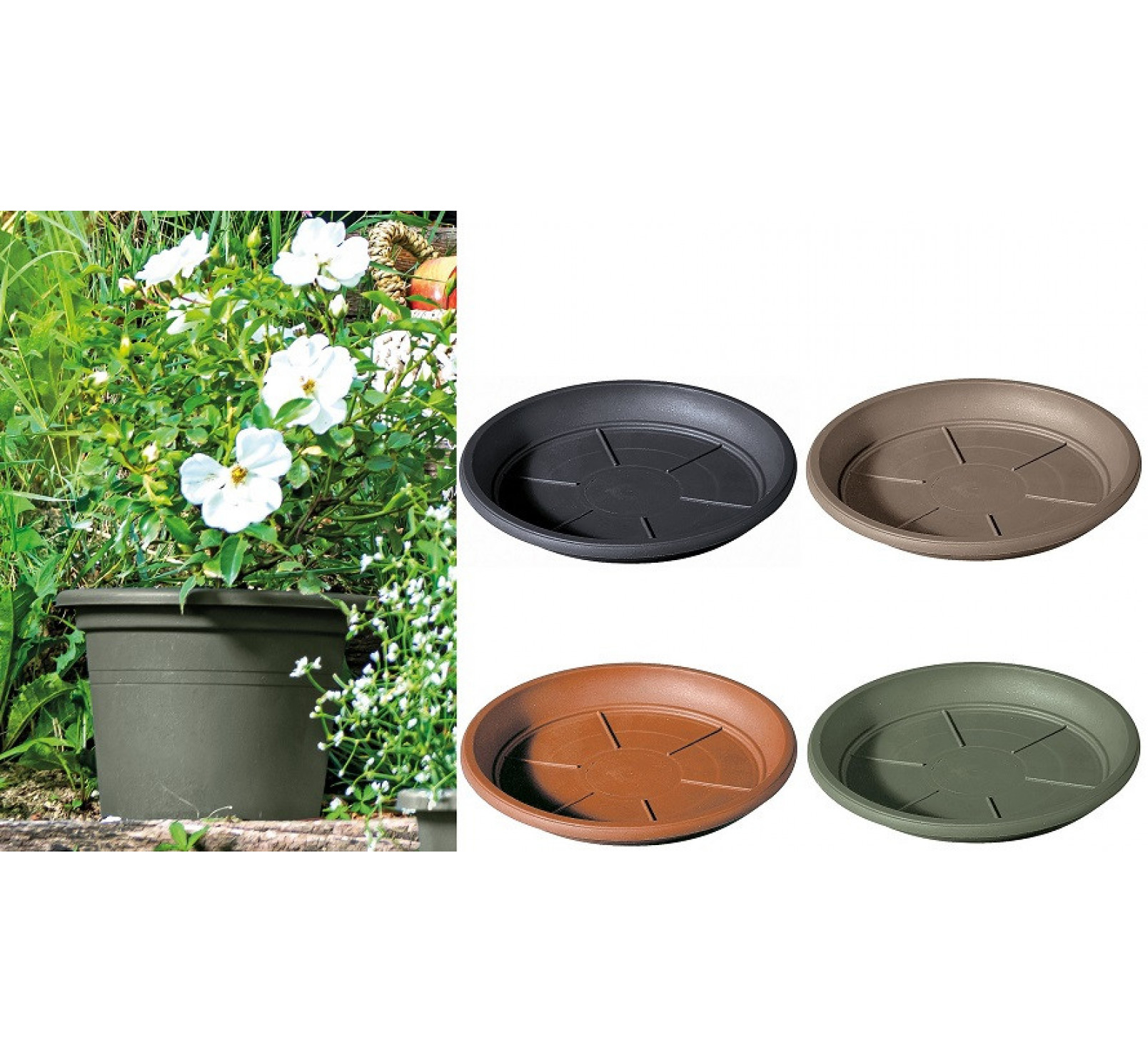 Soucoupe pour pot DAY-R en plastique recyclé traité anti UV intérieur-extérieur.