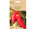 Variété ancienne de type tomate-piment pour culture de plein champ à croissance indéterminée. Les fruits allongés peuvent atteindre plus de 15 cm.Une des variétés préférées des gourmets, elle très charnue, goûteuse et contient peu de jus et de graines.