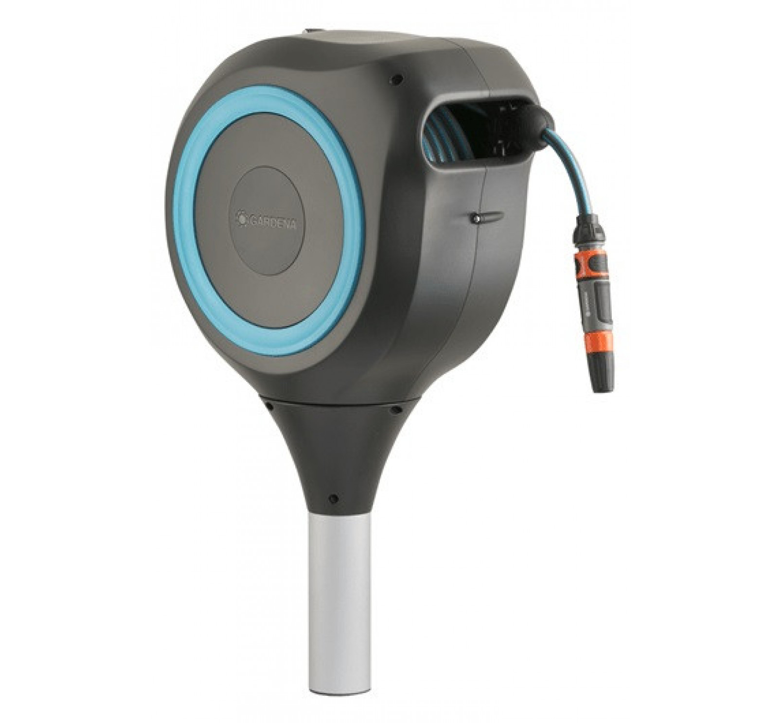 Le dévidoir automatique sur pic RollUp M 20 m GARDENA est idéal pour arroser les jardins de taille moyenne. Une fois fixé au sol, le dévidoir automatique sur pic peut pivoter à plus de 360° afin de pouvoir arroser les moindres recoins du jardin. Il suffit de tirer sur le tuyau darrosage pour le dérouler puis de le relâcher pour lenrouler. Grâce à la technologie RollControl, le dévidoir automatique sur pic GARDENA est équipé dun frein centrifuge, dun ressort en acier de haute qualité et dun guide-tuyau intégré pour éviter les torsions. Egalement équipé dun nez de robinet accessible directement sur le flanc. Un verrouillage du tuyau seffectue à intervalles courts et réguliers (50 cm) pour permettre une manipulation sans effort.