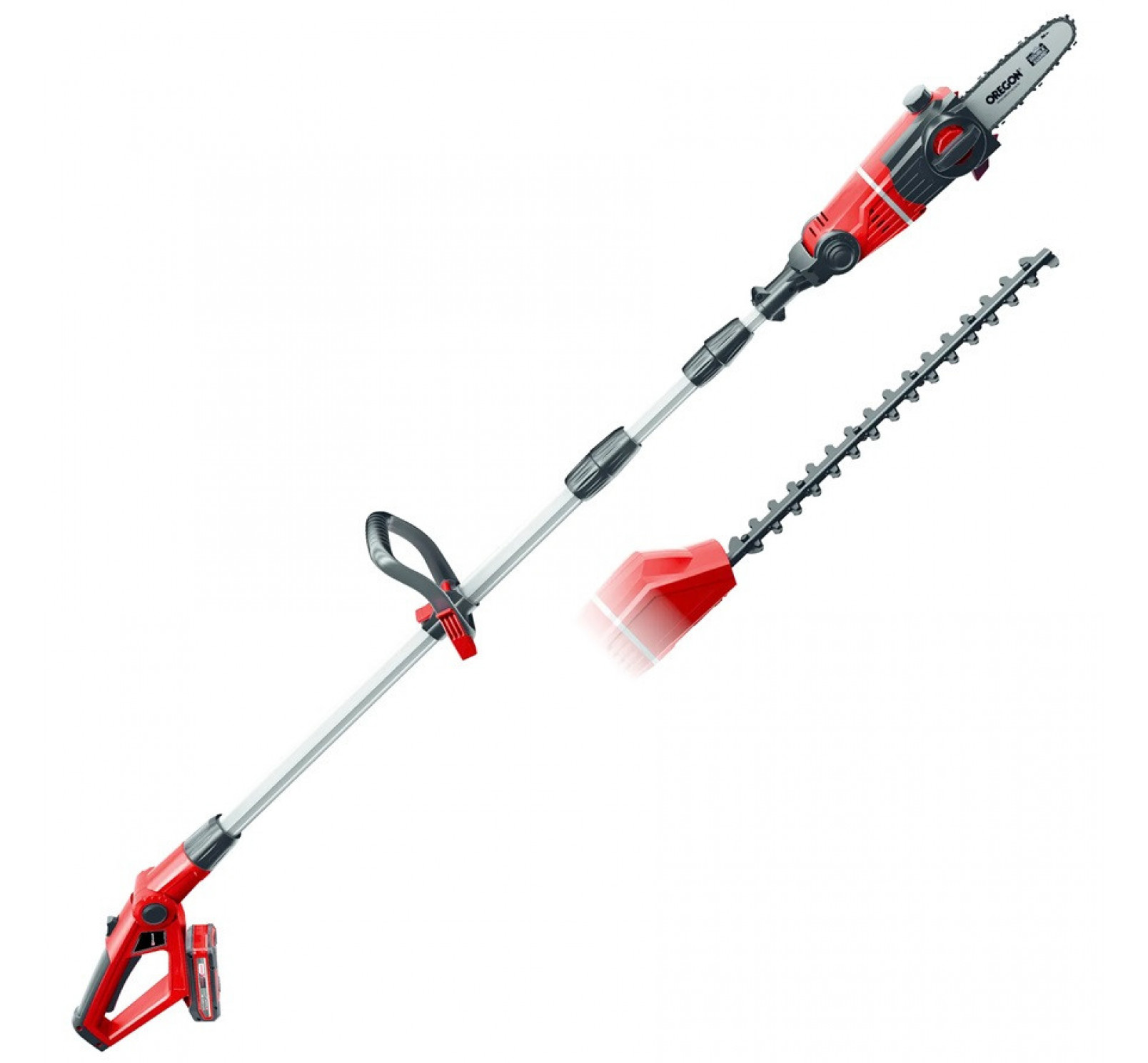 L'outil multifonctions sans fil GE-HC 18 Li T Kit est un appareil puissant pour couper les branches à l'envers et les haies hautes facilement au sol. La boîte de vitesses à engrenage en métal rends loutil solide. De plus la lame de qualité OREGON et le guide chaîne OREGON garantissent des résultats de coupe nets. La partie supérieure est rotative à 90 ° et permet des coupes horizontales sans effort. Un réservoir dhuile permet une lubrification automatique de la chaine Oregon.