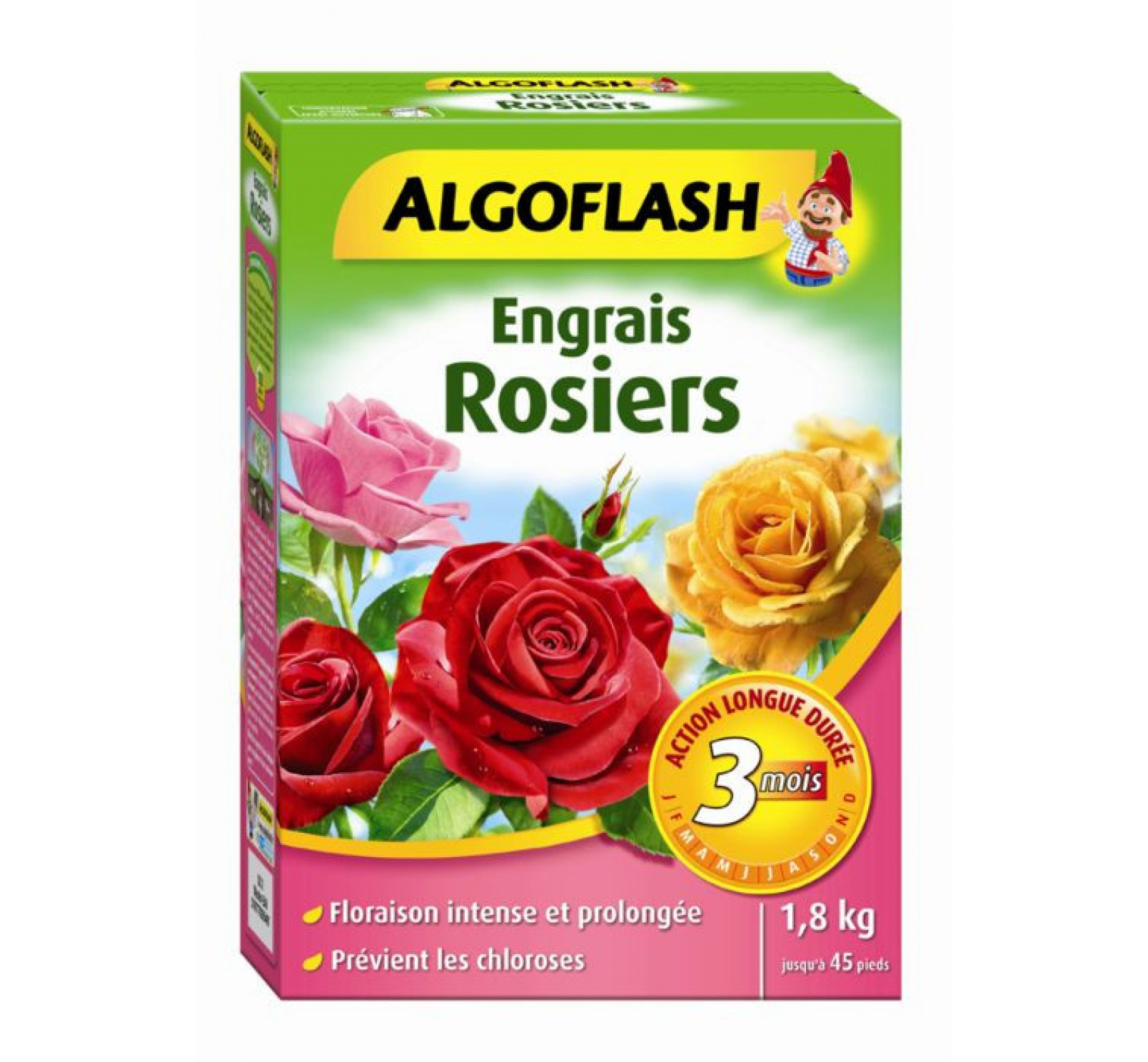L'Engrais Rosiers Algoflash Action prolongée leur apporte une nourriture complète et adaptée. Il s'utilise sur tous les types de rosiers (buissons, grimpants, tiges, remontants...)