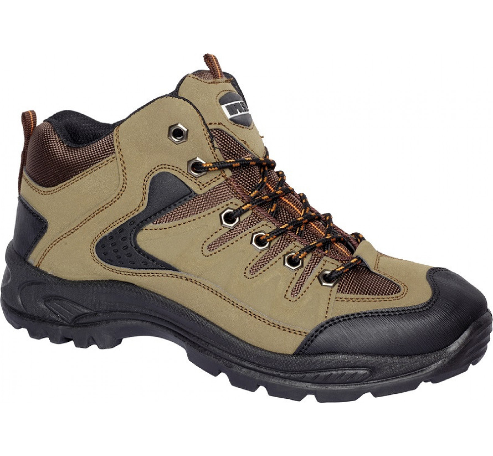 Chaussure de travail et loisirs multi-usages avec semelle cramponnée, système dabsorption dénergie au talon pour une utilisation travail et loisirs.