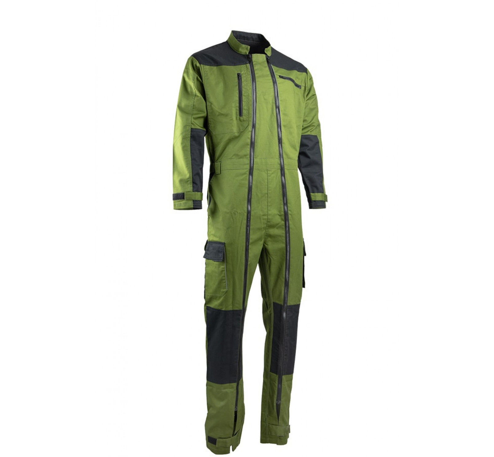 Coloris vert mousse, empiécements noirs.