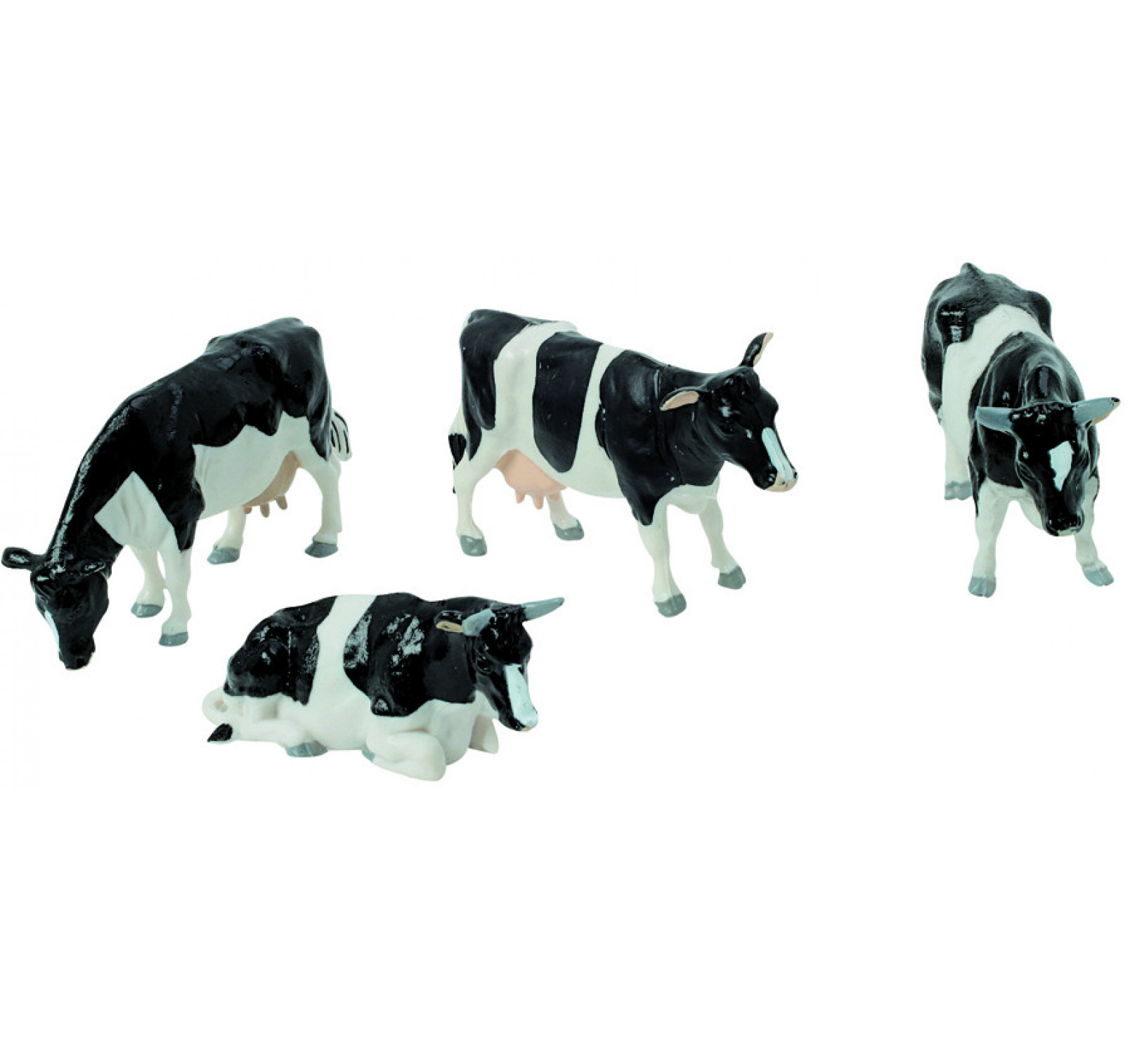 Vaches noires et blanches frisonnes plastiques, 4 pièces.