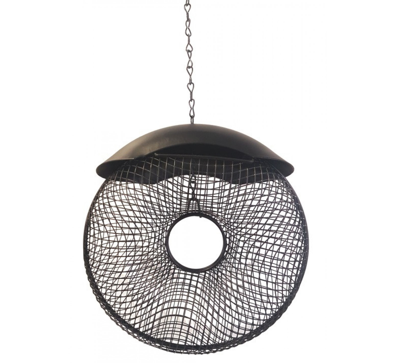Mangeoire Couronne en métal, à suspendre, munie d'un toit de protection, pour mélange de graines. Remplissage facile par le dessus.