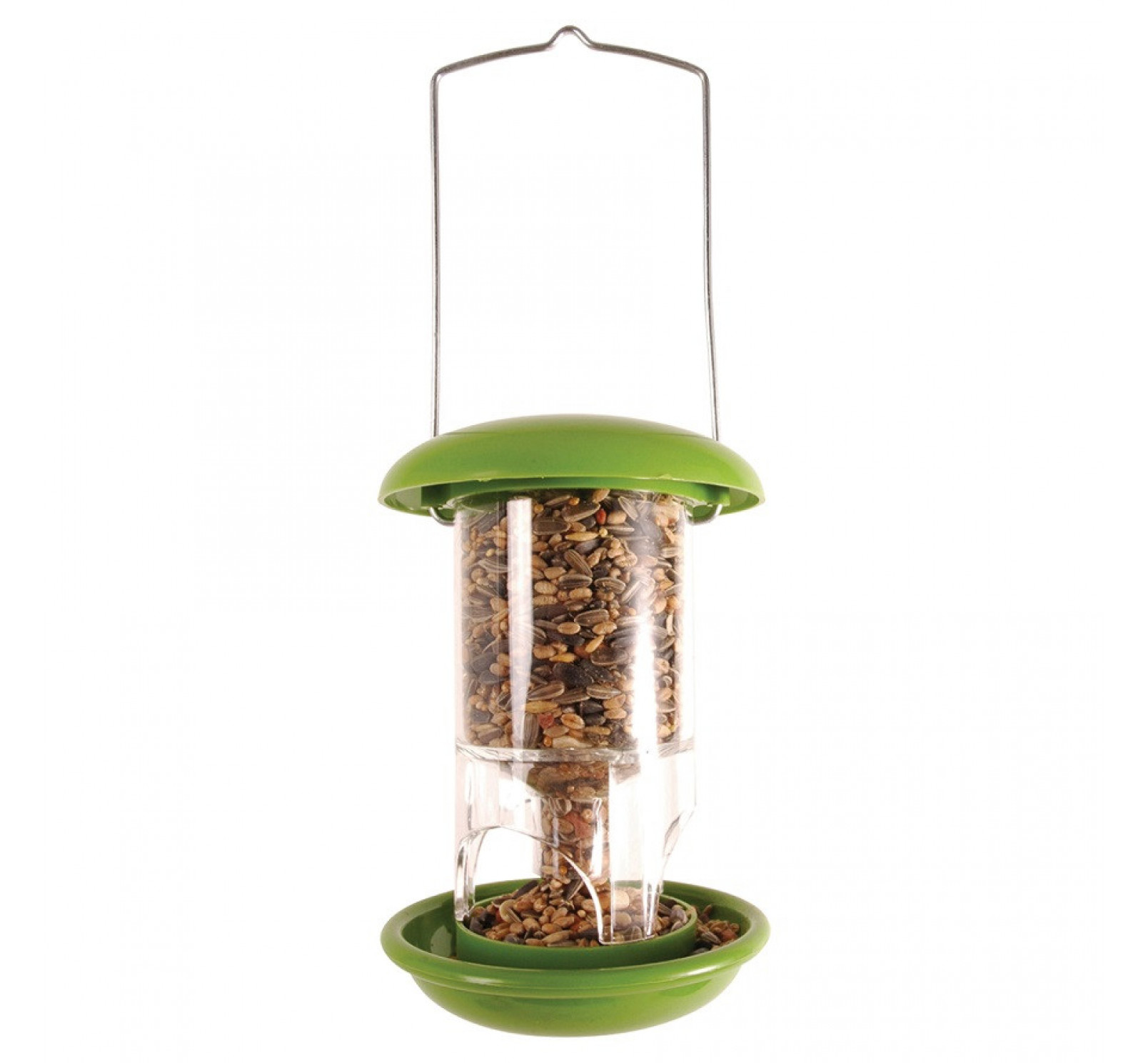 Ce silo alimentaire gardera les aliments dispersés à l'abri de la pluie. Les trois ouvertures assurent une quantité mesurée d'alimentation. Le plateau en bas garantira que les aliments ne tombent pas sur le sol .