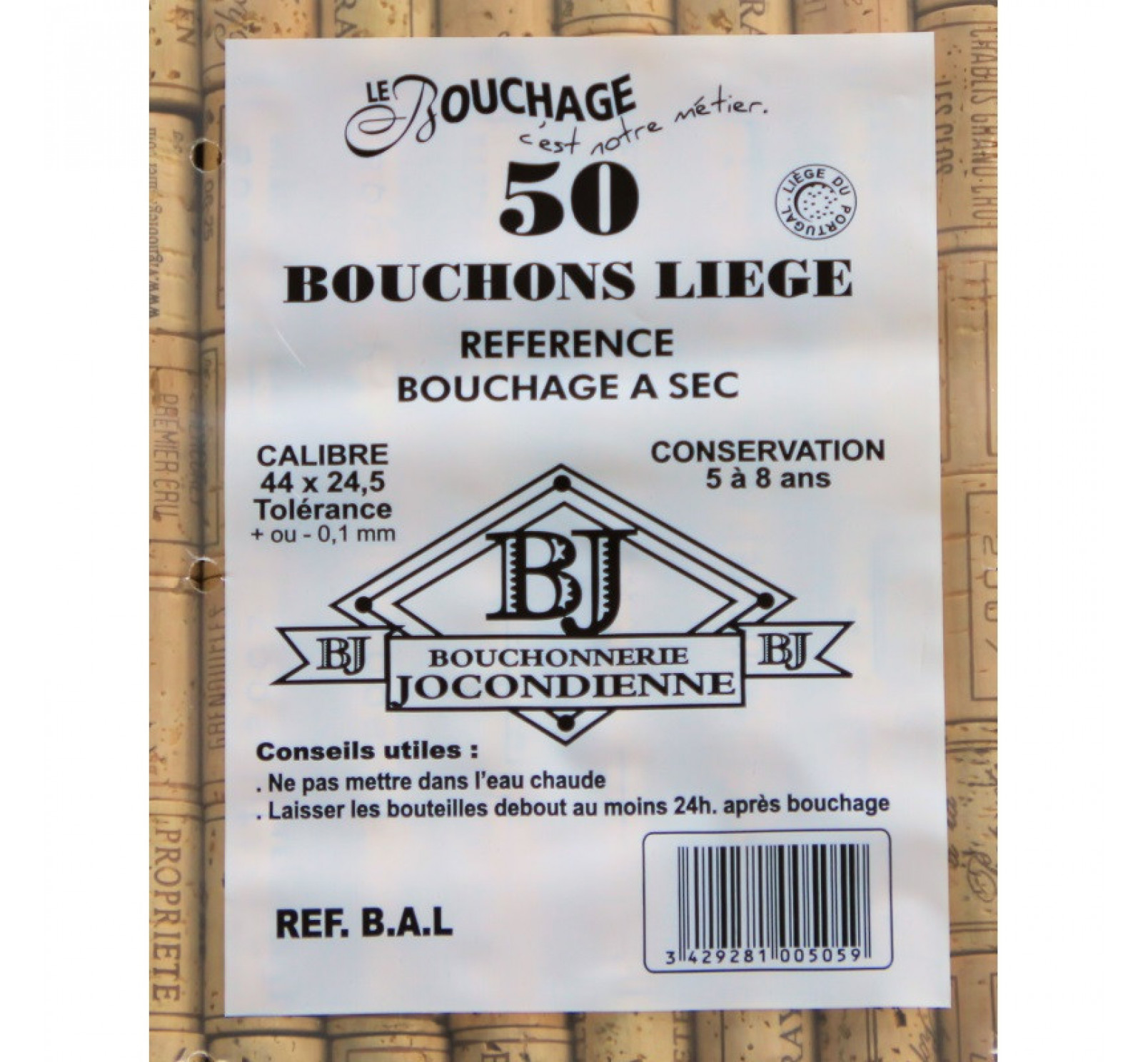 50 bouchons en liège pour bouchage à sec. Garde 5 ans.